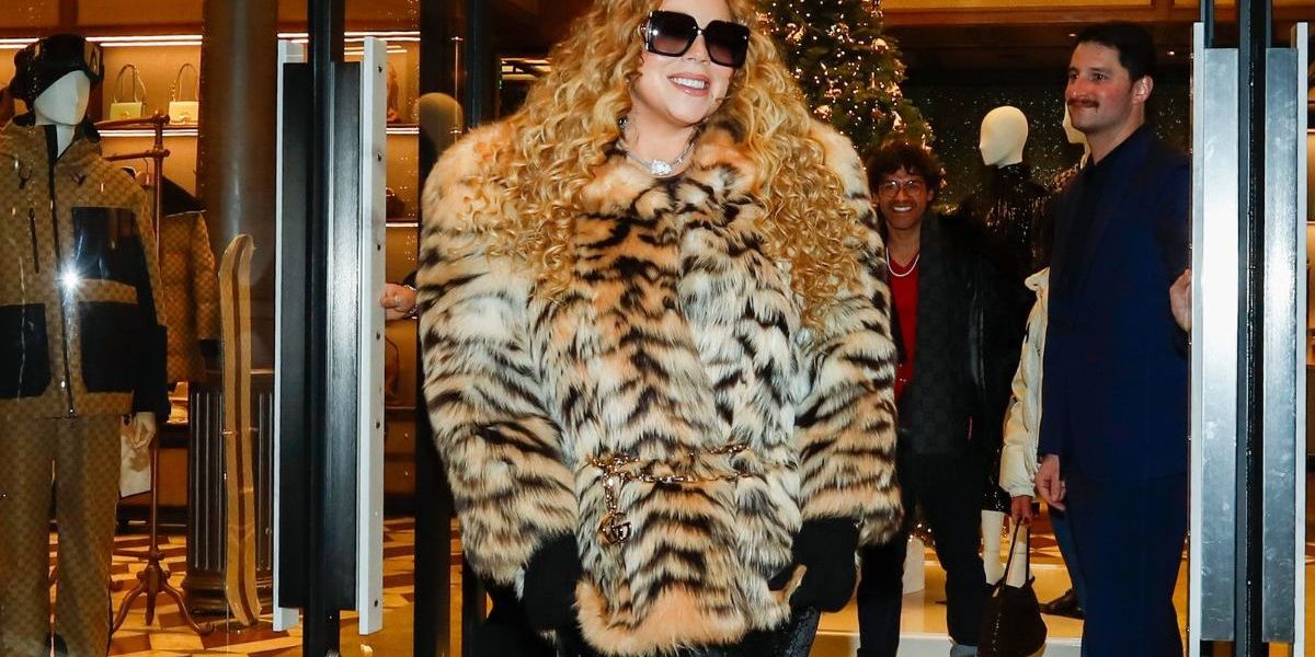 In a recent viral moment shared by the popular X (formerly Twitter) account @metgalacrave, Mariah Carey was captured epitomizing the “Aspen Rich” aesthetic. The photo showcases the singer stepping out in a voluminous, tiger-striped faux fur coat that immediately commanded attention. With its exaggerated shoulders and waist-cinching gold chain belt, the coat is a masterclass in mountain-chic opulence.