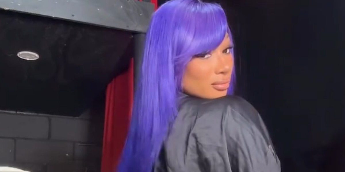 Megan Thee Stallion took to Instagram with her bathrobe twerk video, sporting a black robe that’s got fans totally swooning. Her long, dyed-blue hair adds an extra pop to the look. The clip also features celebrity hairstylist Kellon Deryck, vibing and mumbling along to the music while enjoying her killer dance moves.