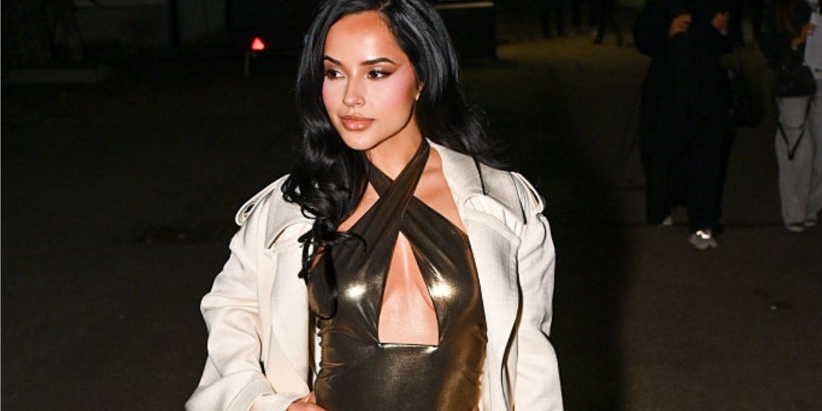 Becky G stepped out in a bold Roberto Cavalli outfit that fully embraced metallic drama and glamorous style. She wore liquid gold tones, animal prints, and a striking silhouette that turned heads. The highlight of the look was a daring bodysuit with a bold cutout that stole the spotlight.