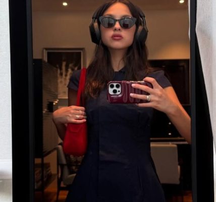 El bodysuit metálico plateado presentaba un diseño de corsé y se ajustaba perfectamente a su cuerpo. Las delgadas tiras metálicas y los intrincados detalles de encaje en el frente añadieron un glamour sin esfuerzo al atuendo. Lo combinó con medias de red negras y botas plateadas hasta la rodilla, añadiendo un toque atrevido y juguetón al look. A los fans les encantó su atuendo y llenaron la sección de comentarios con emojis de corazones.