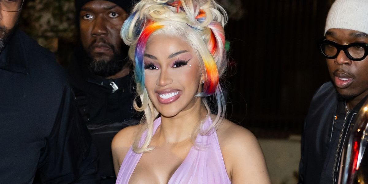 Cardi B dazzles in sheer purple dress with high slits for tour afterparty in photos