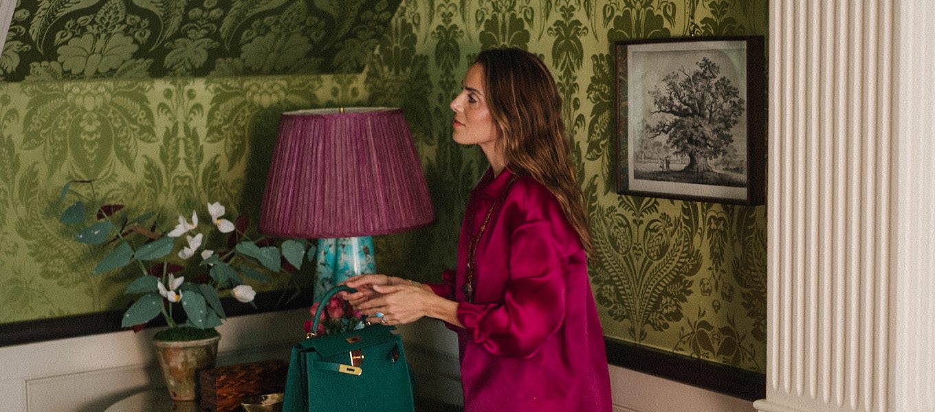 Kallmeyer Top, Farm Rio Pants, JB x Jennifer Behr Necklace, Chanel Flats (similar here), Hermes Bag (on the RealReal here, similar here)