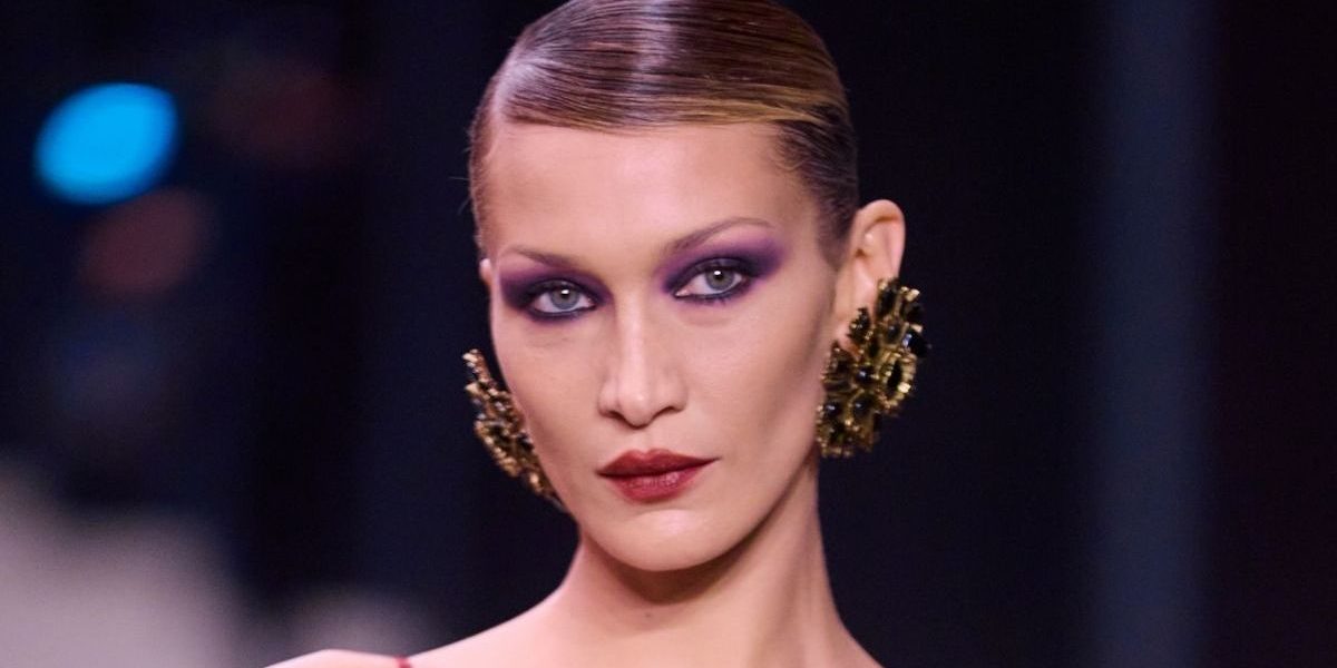 For her glam, the focus is on the new Prada Touch blush. Hadid’s skin is glowing with a soft, rosy pink flush across her cheekbones. In addition, her hair is slicked back into a neat, low bun with a precise side part. This keeps the vibe professional yet chic.