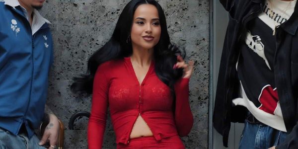 Becky G is turning heads with her fashion choices for her latest music video, donning a see-through lace top hanging by a few hooks and a pair of leggings for the “Marathon” MV. The singer wore a bold, head-to-toe red…