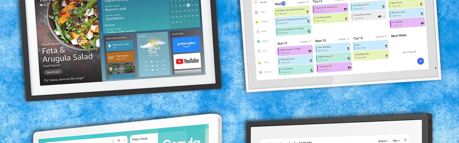 It has a chore chart and rewards system as well as meal planning and a photo screensaver function. But what sets it apart is customizable widgets and Google Play Store compatibility, allowing you to download any app and create a personalized dashboard.