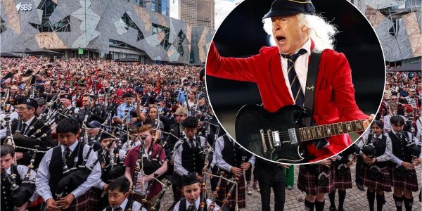 As AC/DC launched their Australian tour in Melbourne on Wednesday, hundreds of bagpipers assembled in record-breaking droves in the nearby Federation Square to play the band’s classic song “It’s a Long Way to the Top (If You Wanna Rock ‘n’…