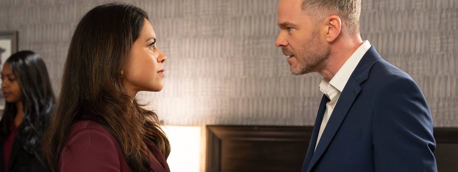 Last season introduced one of the creepiest villains ever on The Rookie. Liam Glasser (Seth Gabel) is a tried-and-true serial killer, but it’s looking possible that he might be a free man soon. Nyla is required to sit for a deposition for the case, but from the beginning, Wesley Evers (Shawn Ashmore) warns Nyla that she’ll have to be perfect in order to win against Glasser’s impressive attorney. Nyla’s words end up getting twisted around so it sounds like she somehow used intimidation and framing techniques while pursuing Glasser during the initial investigation. By the end of the deposition, Nyla has seemingly done more harm than good. But that’s not even the worst part: Wesley admits that he must now report Nyla for her questionable police tactics. This causes conflict with his wife, Angela Lopez (Alyssa Diaz), who wants to defend her friend. However, Wesley points out that he might lose at trial because of Nyla’s actions.