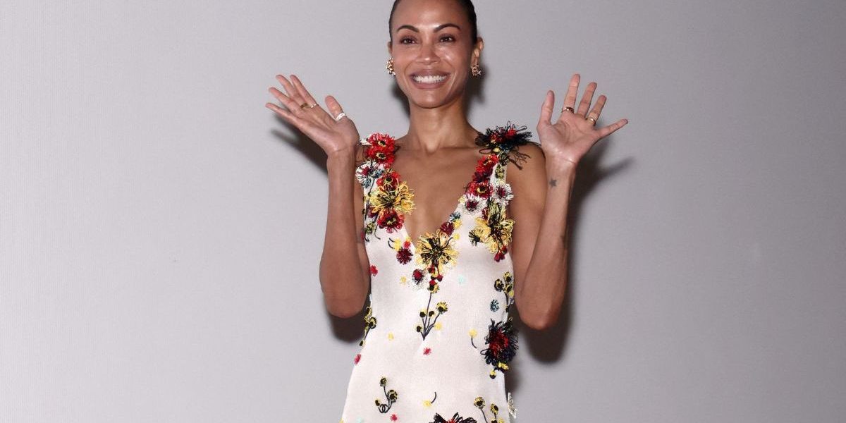 Zoe Saldana’s dress hangs by strings and has a super playful sheer twist